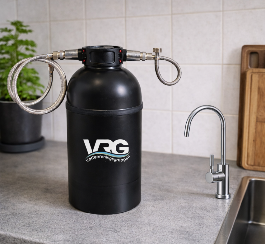 Filtertanken rymmer 5 liter filtermassa och gör den således till ett bra alternativ med hög kapacitet för mindre vattenanvändning, till exempelvis dricksvattnet i köket.